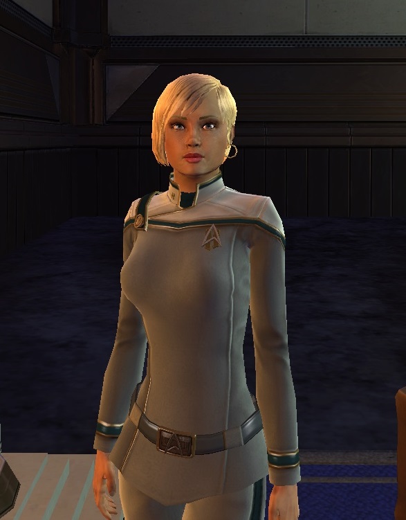 | Personal History | Early Life - Billie Jo was born before dawn on a cold Halloween morning in a small farming town on Earth. Her parents were named Terrance and Linda. Terrance was a retired Starfleet petty officer and Linda was his hometown sweetheart. Billie Jo's early life was rather mostly ordinary up until her older brother, whom she held in high regard, chose to follow in his fathers foot steps and join Starfleet. Terrance went away to Starfleet academy. After this Billie Jo began to entertain ideas of doing the same., much to the chagrin of her father and older brother. They were worried she was not cut out for the rigors of Starfleet life, and given how dangerous the galaxy was becoming they feared what might happen to her. But, she was stubborn and at the age of seventeen she moved away to join Starfleet academy. Starfleet Academy - Billie Jo scored high enough on entrance exams to get into Starfleet academy and managed to do well in her academy course work. She was by no means going to graduate at the top of her class but she was looked upon favorably by her instructors and was well like by her fellow students. She seemed to have a talent for the life sciences and at first considered a career in that field. During her third year at the academy an incident occurred in which a fellow student was attacked and killed by an unknown psychic alien. The creature fed off the fear of other beings. In induced nightmares and terrifying visions until the victim eventually died. Billie Jo became the creatures next victim. Starfleet doctors were able to figure out the nature of the symptoms she was having and after a brief skirmish with security force the creature appeared to be killed. It is unknown if it was or not, but it has never resurfaced. During her recovery, Billie Jo met a Betazoid Doctor named Azuma. The pair bonded and Billie Jo was encouraged to go into medicine. So upon her graduation from the academy she went on to Starfleet Medical. Starfleet Medical - Billie Jo went to Starfleet medical and did well in her studies there. She eventually specialized in emergency medicine. Her choice of specialties has affected her career greatly. Billie Jo is currently fulfilling her residency requirements at Starfleet Medical and waiting for her first posting. |